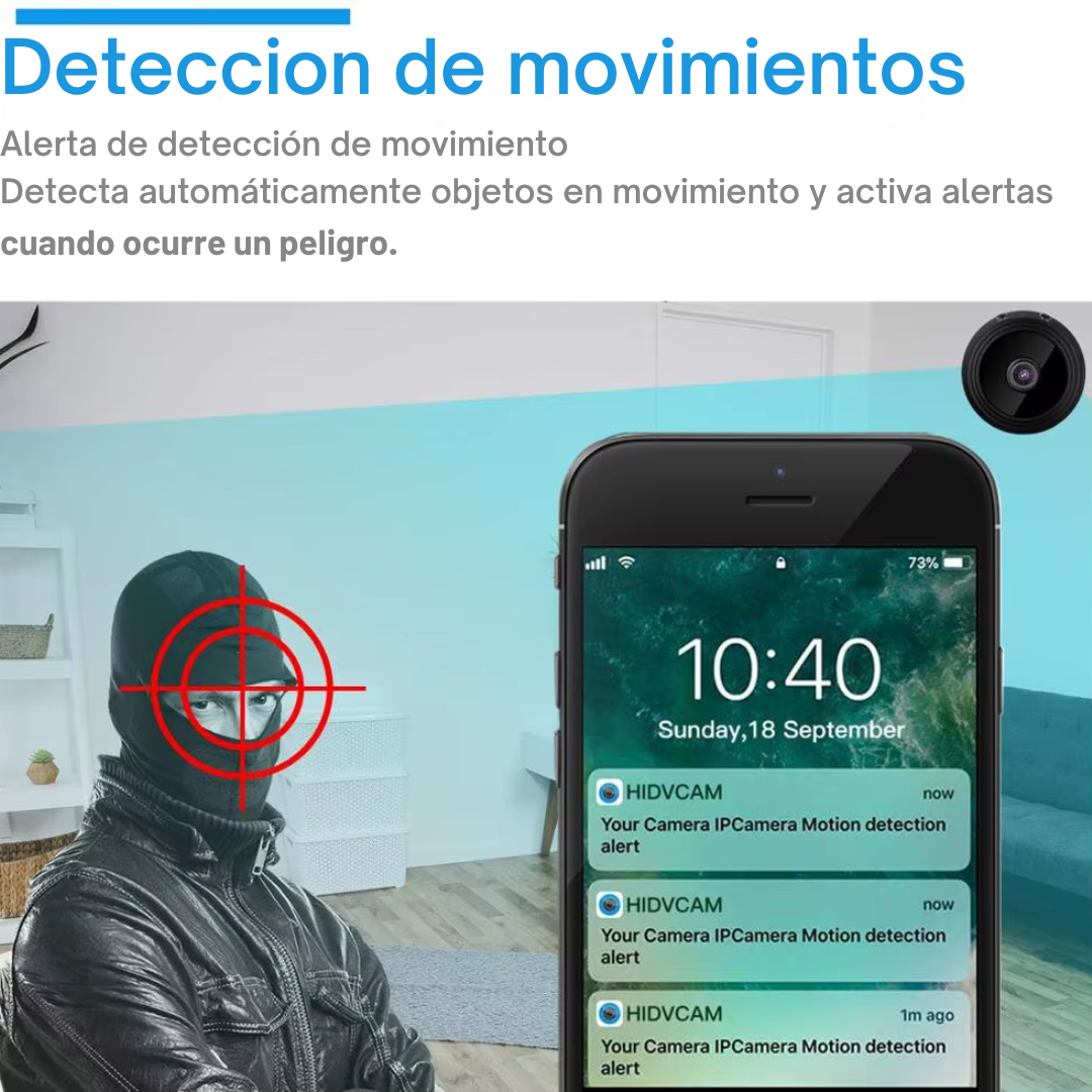 Detecta movimientos, graba automáticamente y transmite en vivo al instante. Ideal para proteger lo que más importa, o incluso monitorear bebés.